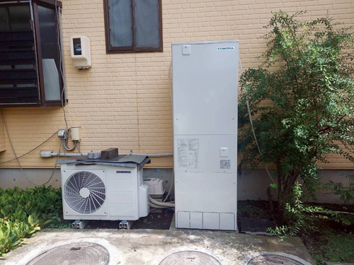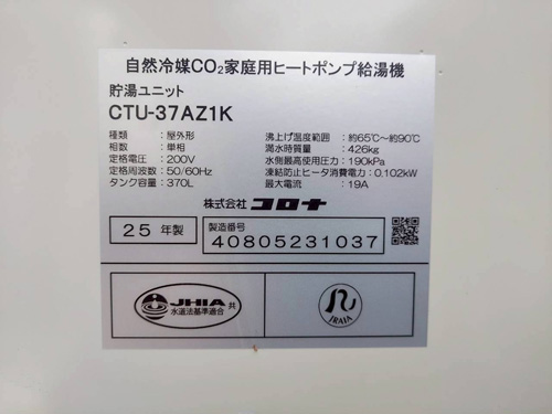 小千谷市小千谷市 三菱電機自然冷媒CO2ヒートポンプ給湯機 貯湯タンクユニットSRT-HPTK37W5→コロナ自然冷媒CO2家庭用ヒートポンプ給湯機ヒートポンプユニットCHP-DZ451K、貯湯ユニットCTU-37AZ1K エコキュート交換工事 施工前 施工後
