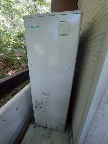 胎内市大出 三菱電機家庭用自然冷媒CO2ヒートポンプ給湯機 ヒートポンプユニットSRT-LUK45-L→ダイキン自然冷媒CO2・家庭用ヒートポンプ給湯機 ヒートポンプユニットRQW45YHV、貯湯ユニットTUA37YHV エコキュート交換工事 施工前 施工後